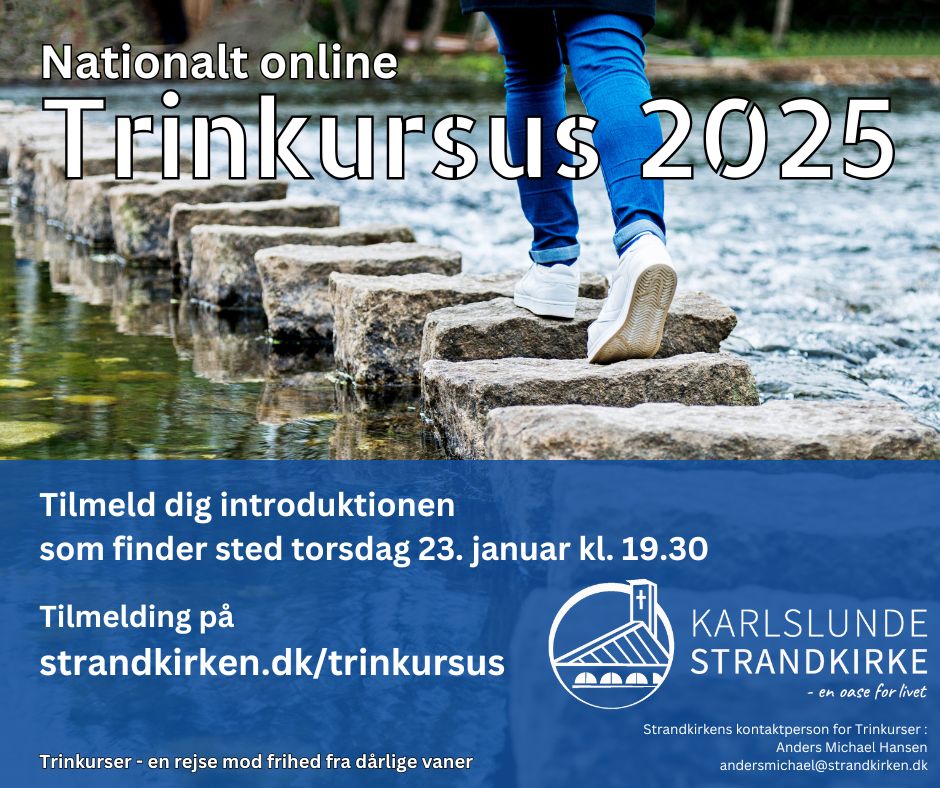 Trinkurser så dagens lys i 2005 i Danmark. Siden har kurset vokset sig udover landets grænser og opererer i 5 nationer. Omkring 5000 mennesker har deltaget og historierne om hvordan mennesker har fundet hjælp er mangfoldige. Som kirke deltager vi i dette kursus med vores egen gruppe og det ville være godt at have dig med.